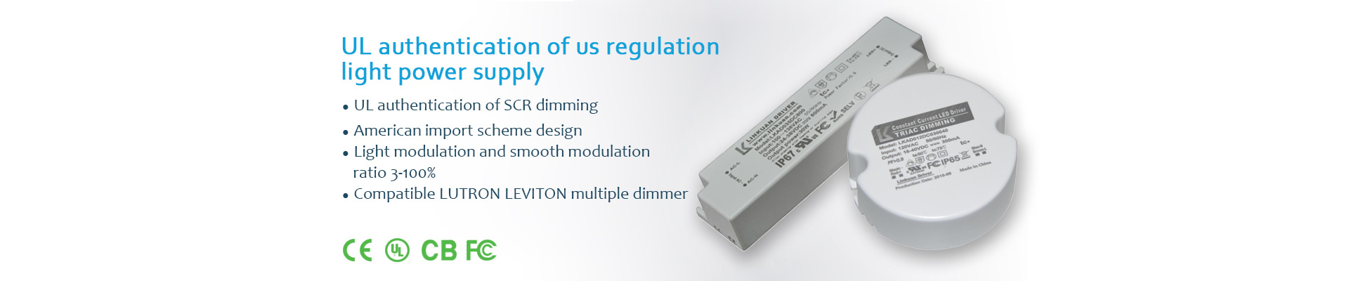 領冠智能調光電源主推美規UL認證恒壓可控硅調光電源,規UL認證恒壓0-10V調光電源美規恒流線條燈調光電源,美規UL恒流調光電源,dali調光電源,0-10V調光電源等認證產品。